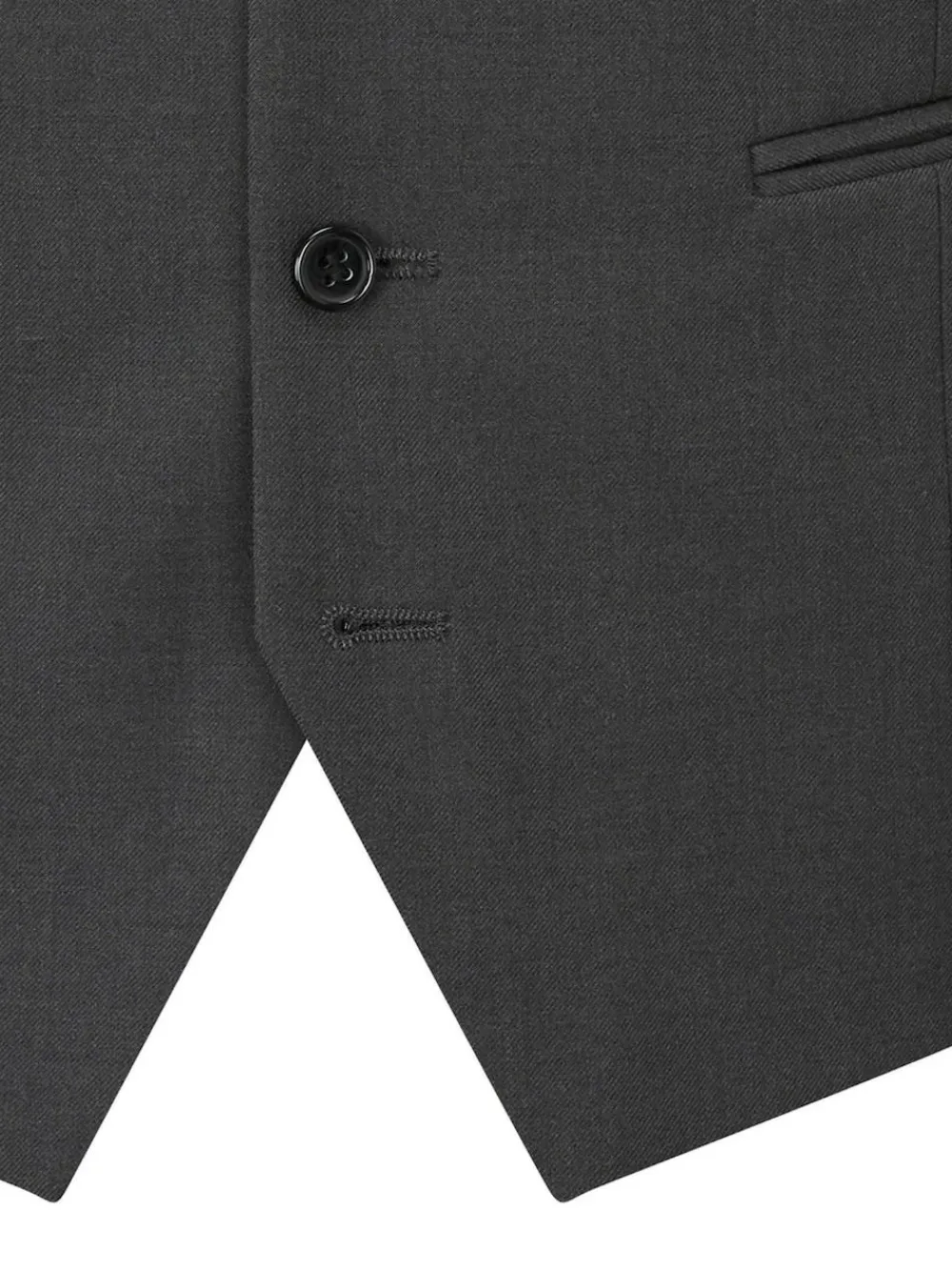I’m in Dark Grey Madrid, a single-breasted suit waistcoat in an all-around dapper design. Fasten up my five buttons for a look that adds that certain something, especially when teamed with a tie and my matching suit jacket.Madrid single-breasted suit waistcoat in charcoal grey. Features include five-button fastening, straight jetted pockets, jetted ticket pocket with an adjustable back strap. See a matching tailored jacket and trousers. Dry clean only. 80% Polyester, 20% Viscose.