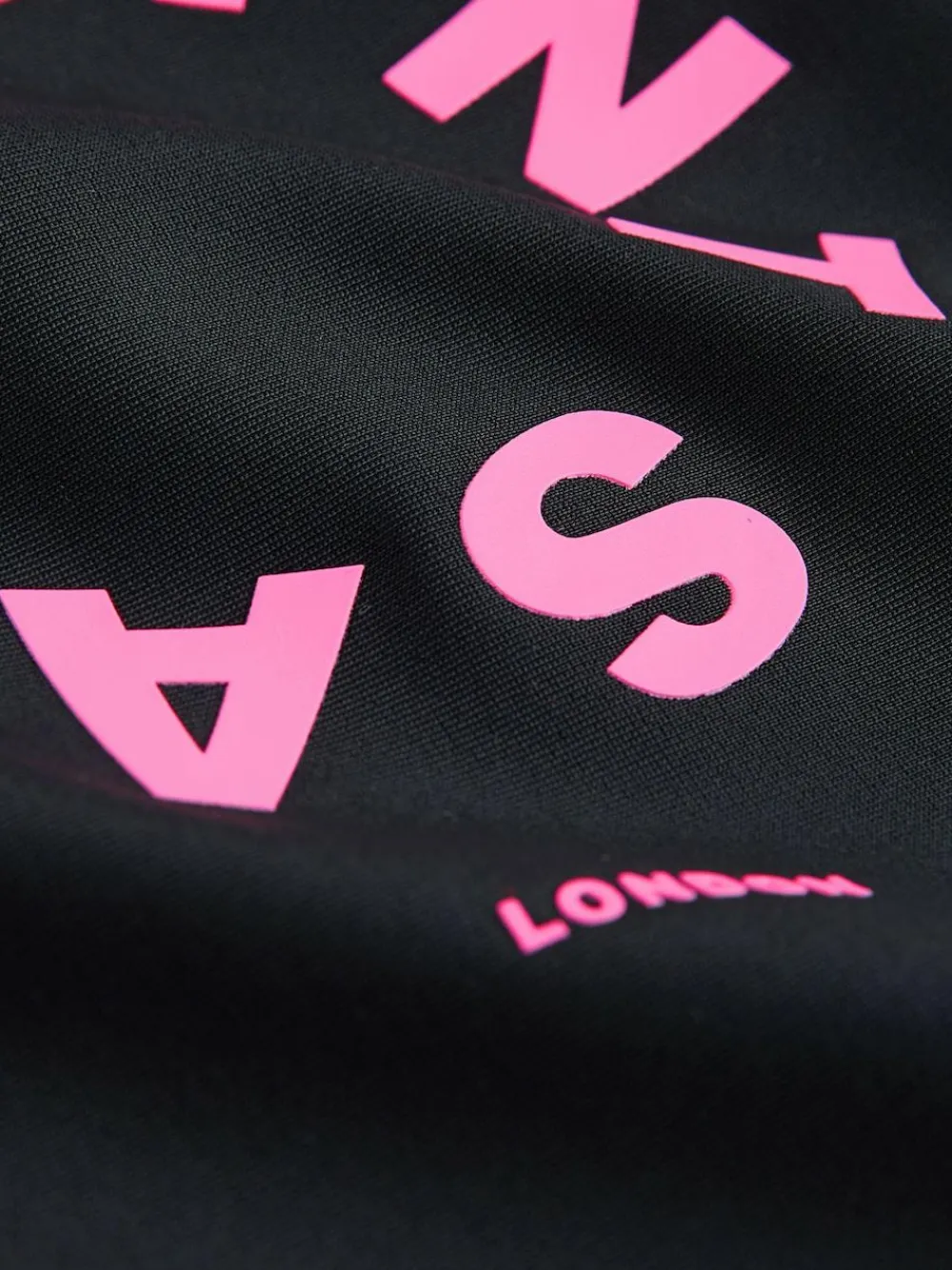 Make a bold statement at the pool or beach with the smALLSAINTS Black Tierra Logo Asymmetric Swimsuit. This striking piece features a black base accented with a vibrant bright pink print of the AllSaints Tierra logo at the front. The modern asymmetric strap design provides a unique silhouette, while the eye-catching leopard trim along the edges adds an on-trend feel. Designed for both style and comfort, this swimsuit is perfect for all-day swimming and sun-soaked adventures. Asymmetric strap design AllSaints Tierra logo Leopard print trim Main 80% Nylon, 20% Elastane. Lining 92% Polyester, 8% Elastane.