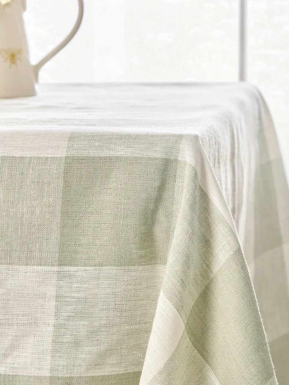 Sophie Allport Sage Green Gingham Linen Tablecloth^ Table Linen, Placemats & Coasters