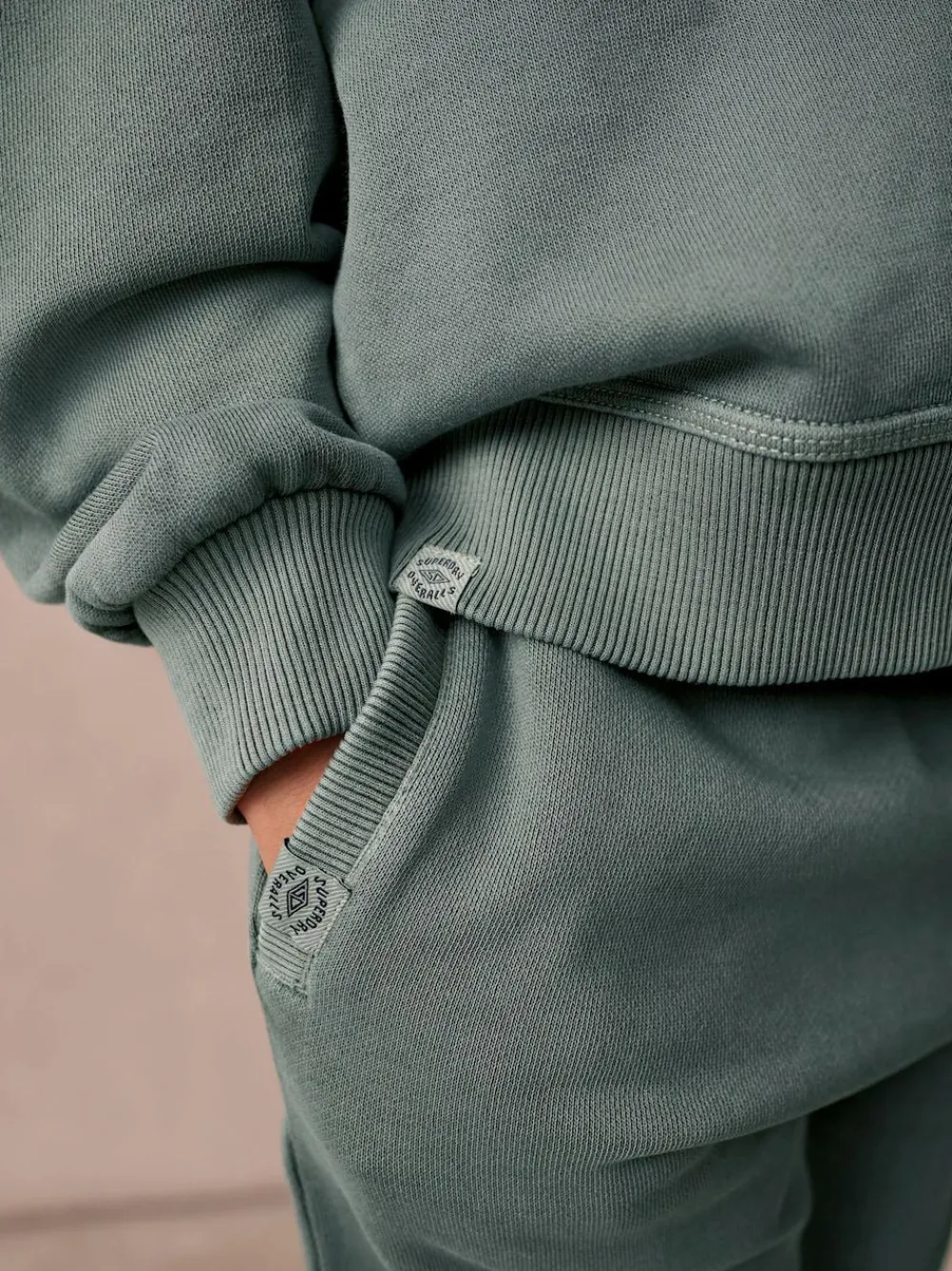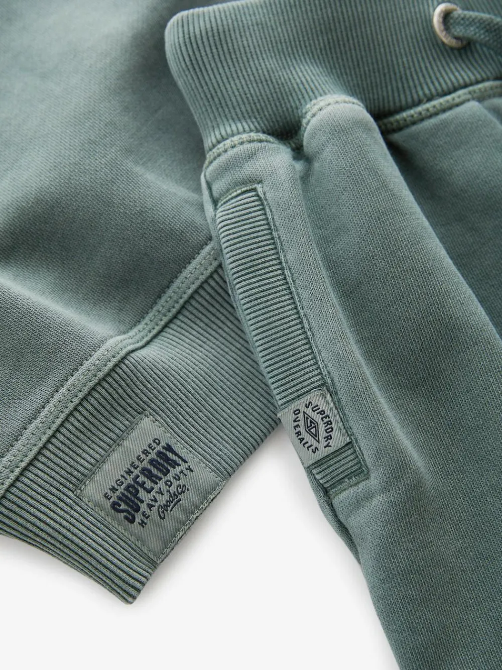 Heavyweight Soft Touch Brushed Cotton Embroidered Superdry Brand Logo Ribbed Cuffs and Hemline. Superdry overdyed garments use innovative techniques that give an authentic heritage quality; as a result, each product will have its unique appearance. Our overdyed garments are designed to fade naturally with age during washing and wear. Please follow the care instructions carefully and avoid contact with light surfaces as colour may transfer. Please wash separately. Machine washable. Sweater and Jogger Body 100% Cotton. Rib 95% Cotton, 5% Elastane.
