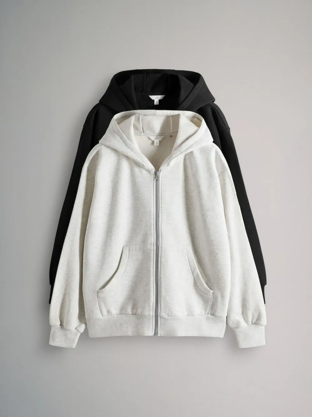 Stock up on your everyday essentials with THE SET 2 Pack zip through hoodies. This versatile set includes two staple colours, black and grey marl, perfect for any casual look. Made from a soft brushback fabric, these hoodies are designed with a relaxed fit for ultimate comfort. The convenient zip-through front makes them an easy layering piece for all seasons. 2 pack Zip through Relaxed fit 2 x Zip Through 60% Cotton, 40% Polyester.