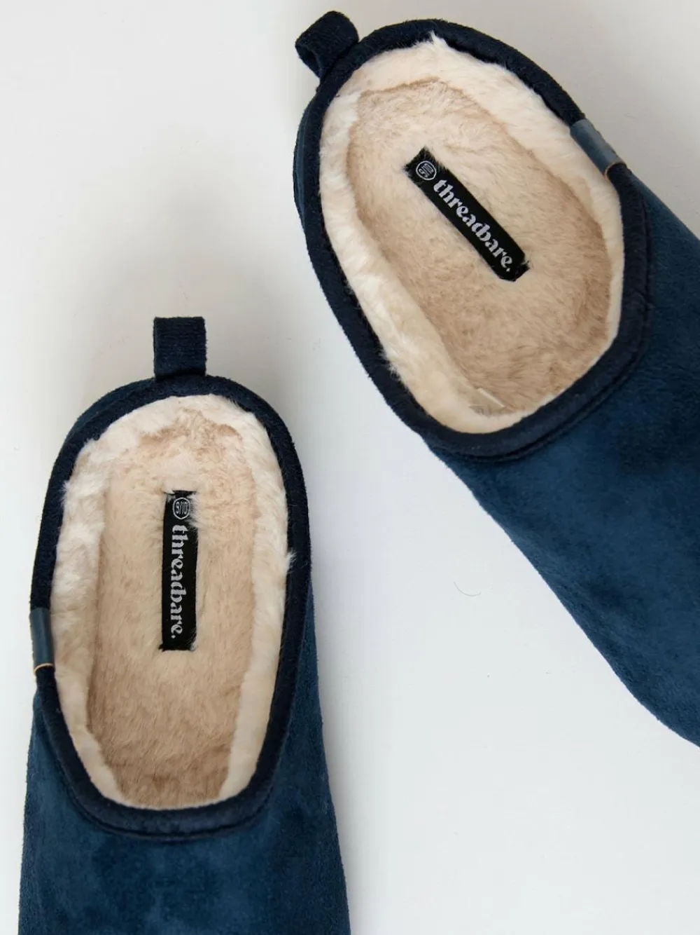 Lounge in comfort in these faux fur-lined mule slippers from Threadbare. Faux suede upper. Faux fur-lined. Low back with pull tab. Branded tab. Lightweight sole with grip. Main – 100% Textile. Lining – 100% Textile. Sole – 100% Textile.