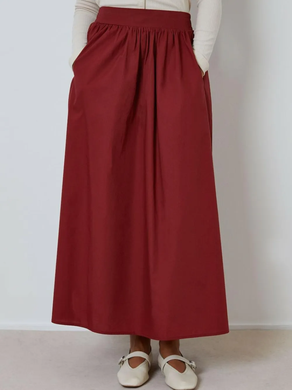 Threadbare Maroon Red Midi Skirt with Pockets^Women Skirts
