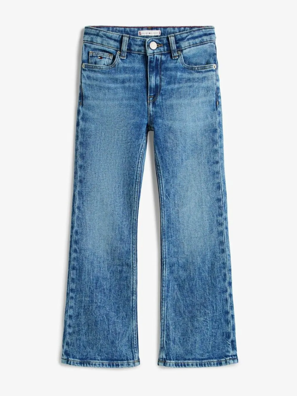 These bootcut jeans feature a mid-blue wash with classic five-pocket styling and subtle fading for a laid-back, timeless look. Machine washable. 99% Cotton, 1% Elastane.