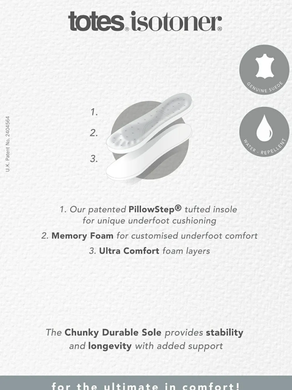 Our suede brown bootie combines luxury with practicality, featuring a faux fur cuff and lining for warmth and cosiness this season. In a classic grey shade with a durable chunky sole, it offers both fashion and functionality. Designed with genuine suede in a bootie style, it includes a Pillowstep® tufted insole for underfoot cushioning, memory foam for comfort, and an ultra-comfort foam layer, ensuring every step is stylish and comfortable. Upper – Textile, Lining and Sock – Other Materials.