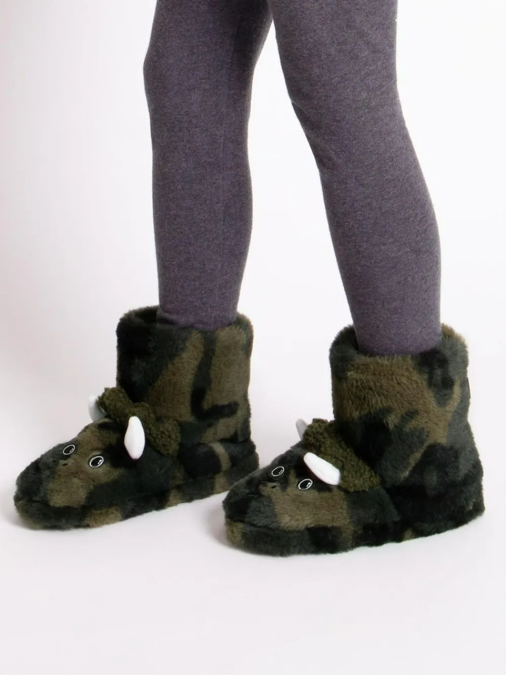 These super cute boot style kids slippers feature a smiley 3D dinosaur decoration, making them perfect winter warmers for your little ones. Made from fluffy faux fur with a warm and cosy fleece lining, they have a durable textured sole, allowing for endless running, jumping, and playing all winter long. These characterful 3D dinosaur design boot slippers are machine washable at 30° and beautifully packaged in a reusable fun box, making them the perfect gift. Upper – Textile, Lining and Sock – Textile.