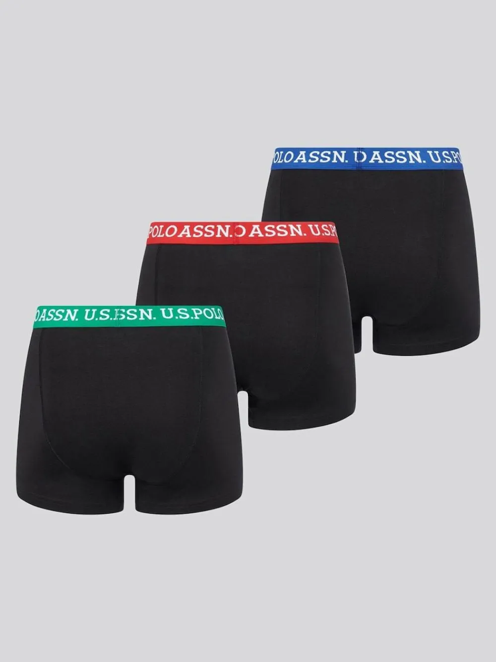The USPA Contrast Waistband Trunk 3 Pack offers everyday comfort with a signature twist. Made from a soft luxury cotton blend with added stretch, these classic-fit trunks feature a bold contrast waistband with U.S. Polo Assn. branding for a distinctive finish. Ideal for wearing under joggers, jeans or uniform, this boxed pack is a practical and stylish addition to the essentials drawer. Machine washable. 98% Cotton, 2% Elastane.
