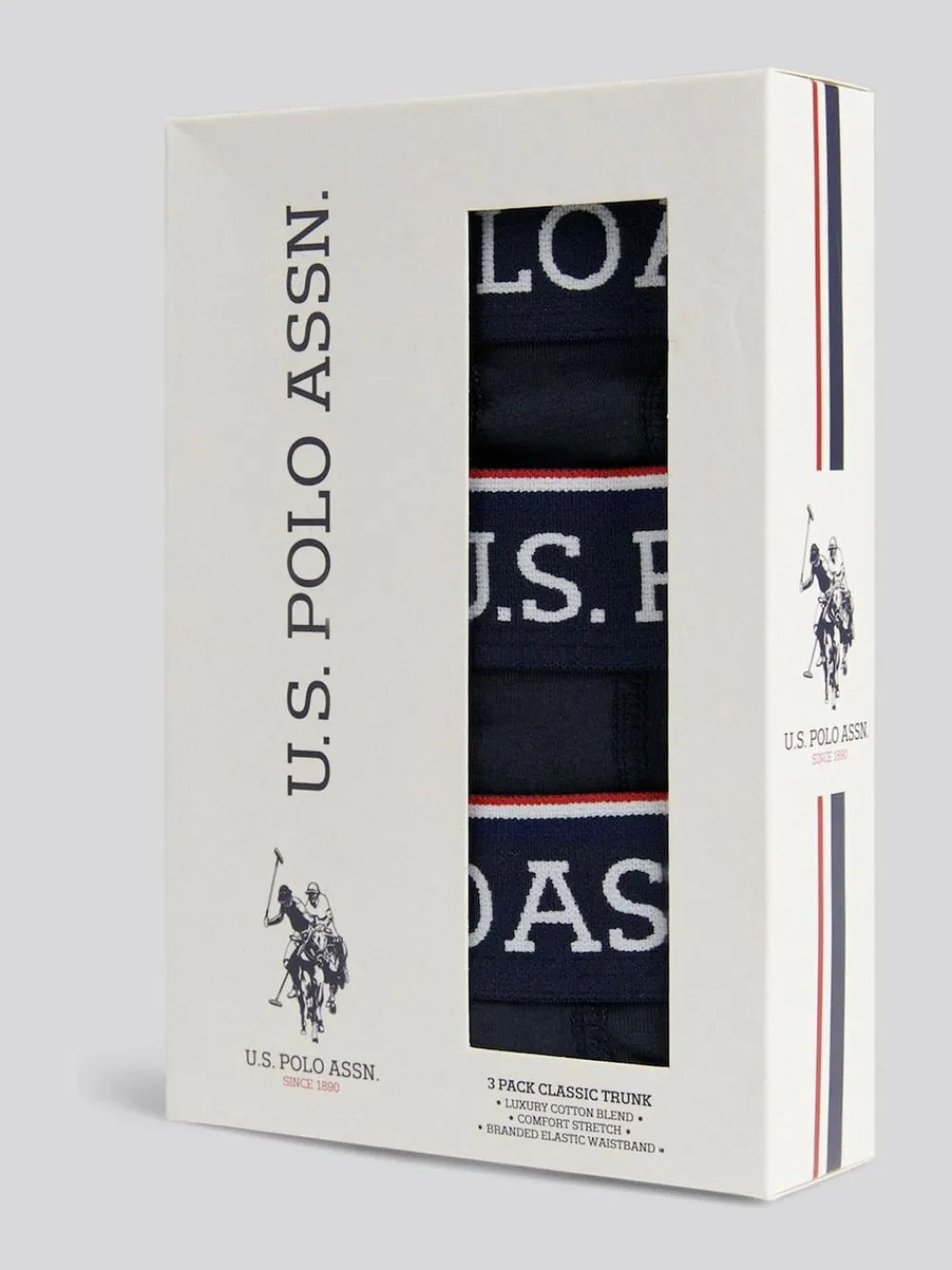 The ‘USPA Trunk 3 Pack Cotton Blend Classic Fit’ is a practical and stylish underwear essential for growing wardrobes. Crafted from a soft cotton blend with added stretch, each pair delivers comfort and flexibility, while the branded waistband adds a heritage-inspired touch. Designed in a classic trunk silhouette, this set of three is perfect for everyday wear and is neatly boxed for easy gifting or storage. Machine washable. 98% Cotton, 2% Elastane.