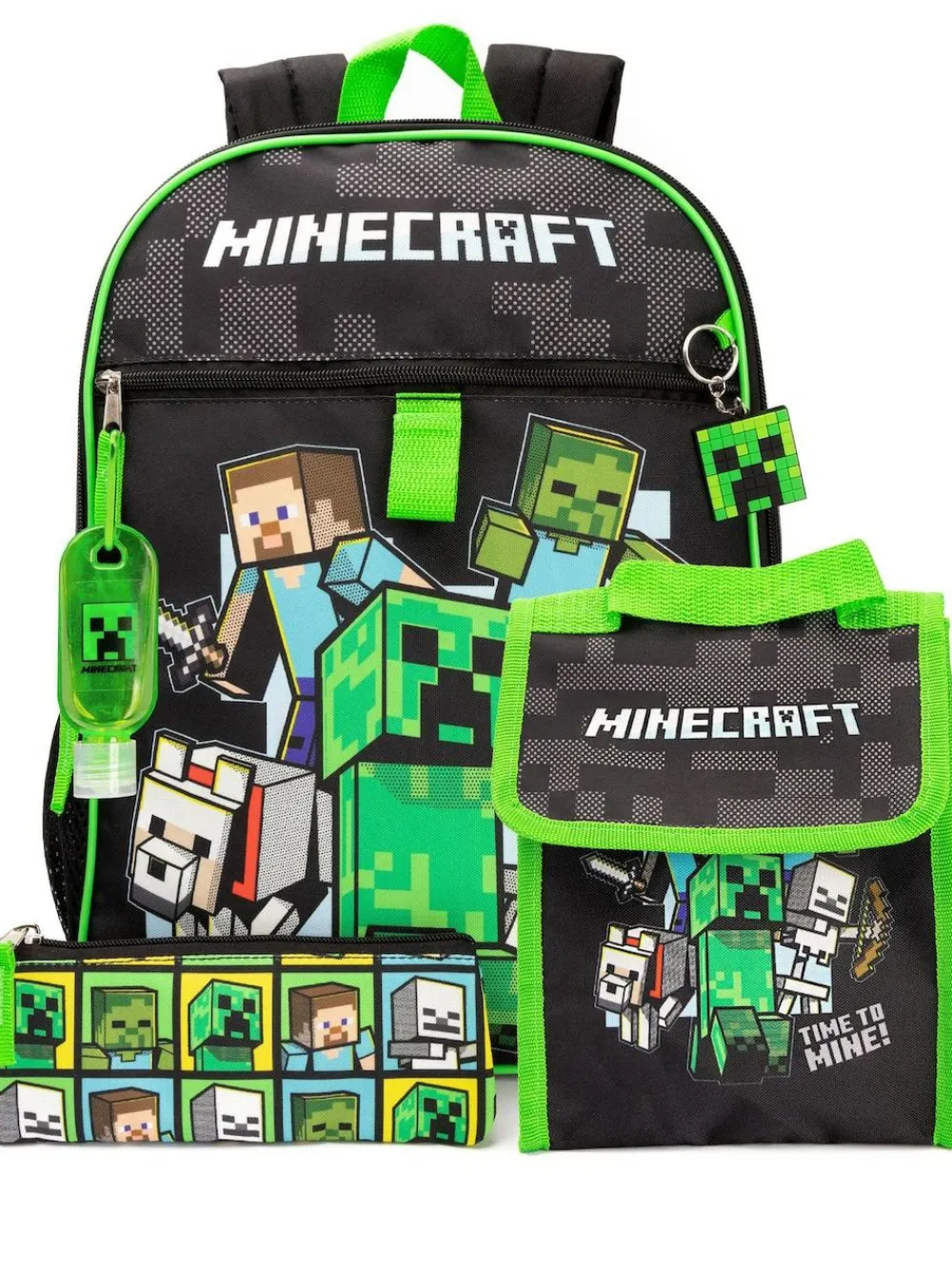 Get your pickaxes and swords ready for an awesome day at school with this Minecraft school rucksack 5 piece set. Including a gamer backpack, lunch bag, pencil case, hand sanitizer dispenser and a keyring. 50% Polyester, 50% Polypropylene.