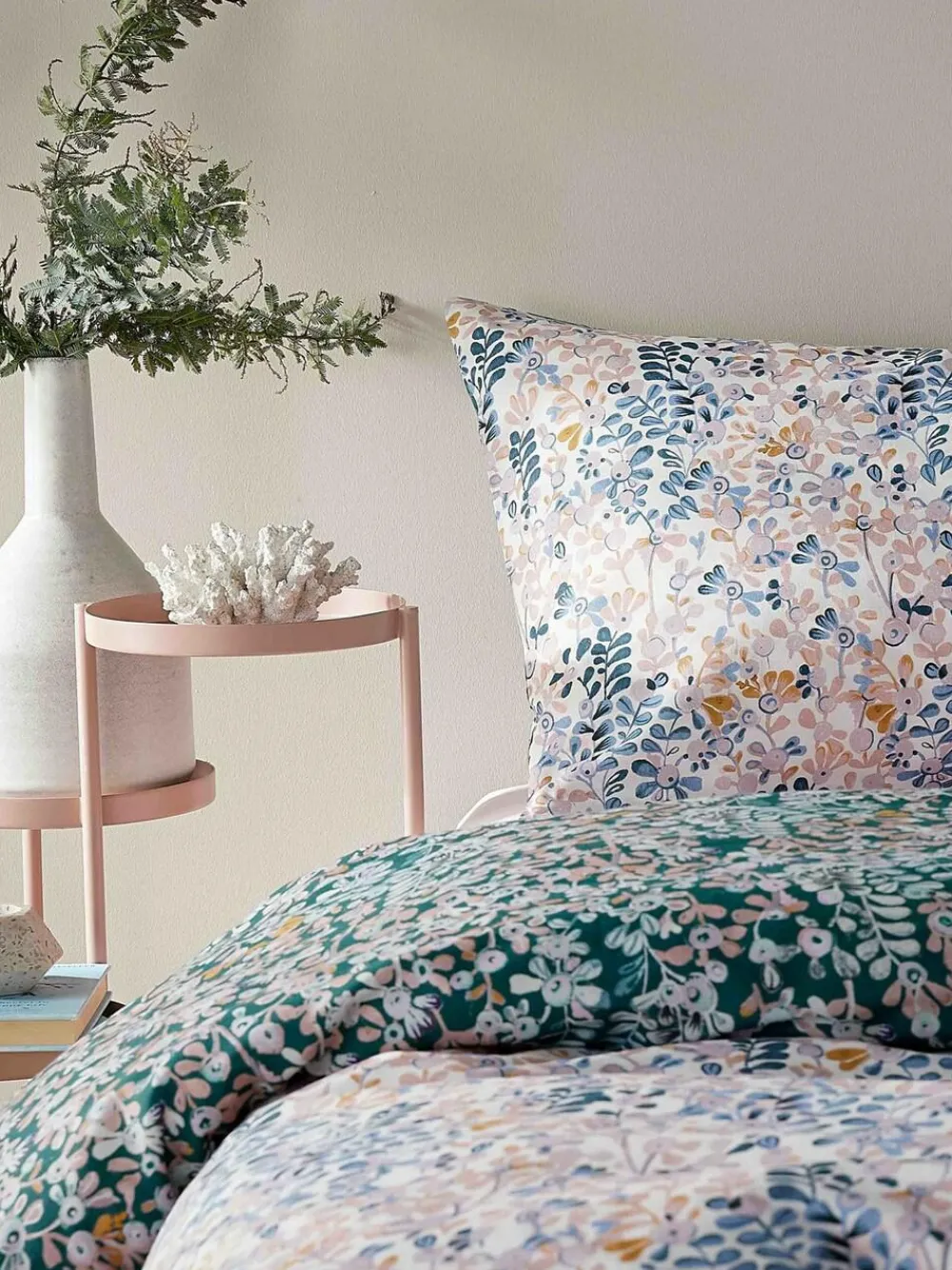 Next White/Sage Green Floral 100% Cotton Fitted Sheet and Pillowcase Set^ Bedsheets & Pillow Cases