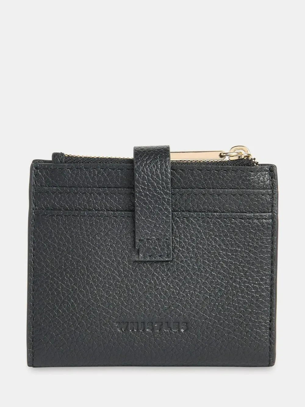 Whistles Black Danni Tab Detail Compact Purse 100% Leather.