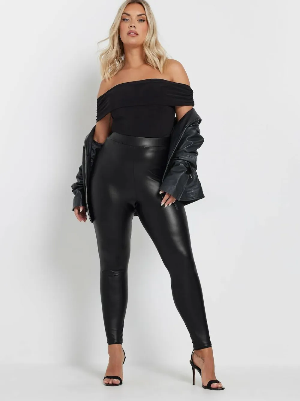Yours Curve Black Stretch Coated Leggings^Women Leggings & Sweatpants